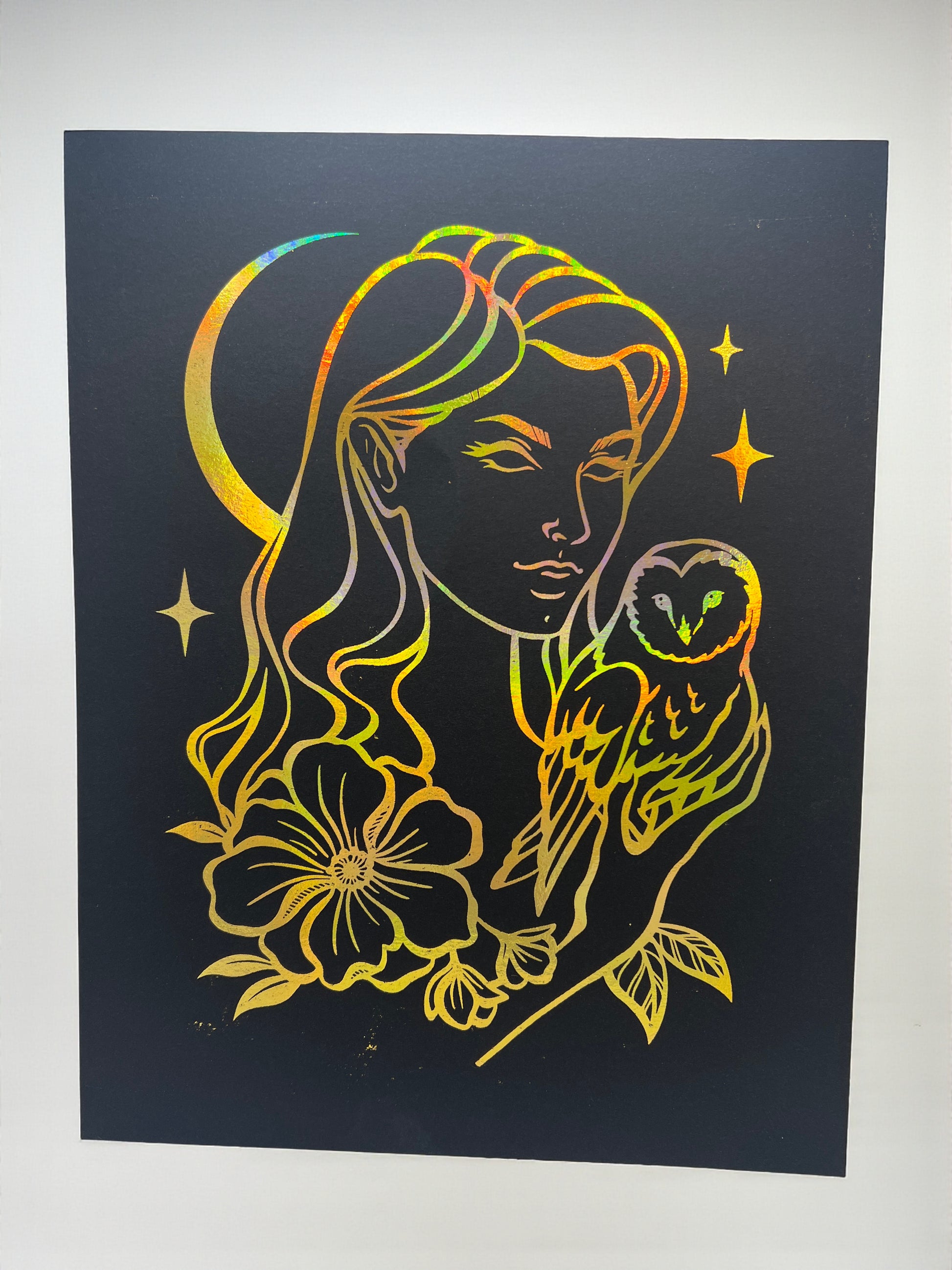 Elevate your space with this exquisite Foil Art Print featuring a stunning holographic finish. Its unique shimmering effect catches the light from every angle, creating a dynamic visual experience that transforms any room. Perfect for art lovers seeking a modern touch, this print combines vibrant design with a luxurious metallic sheen for lasting impact. Add a captivating focal point to your décor with this one-of-a-kind masterpiece.
