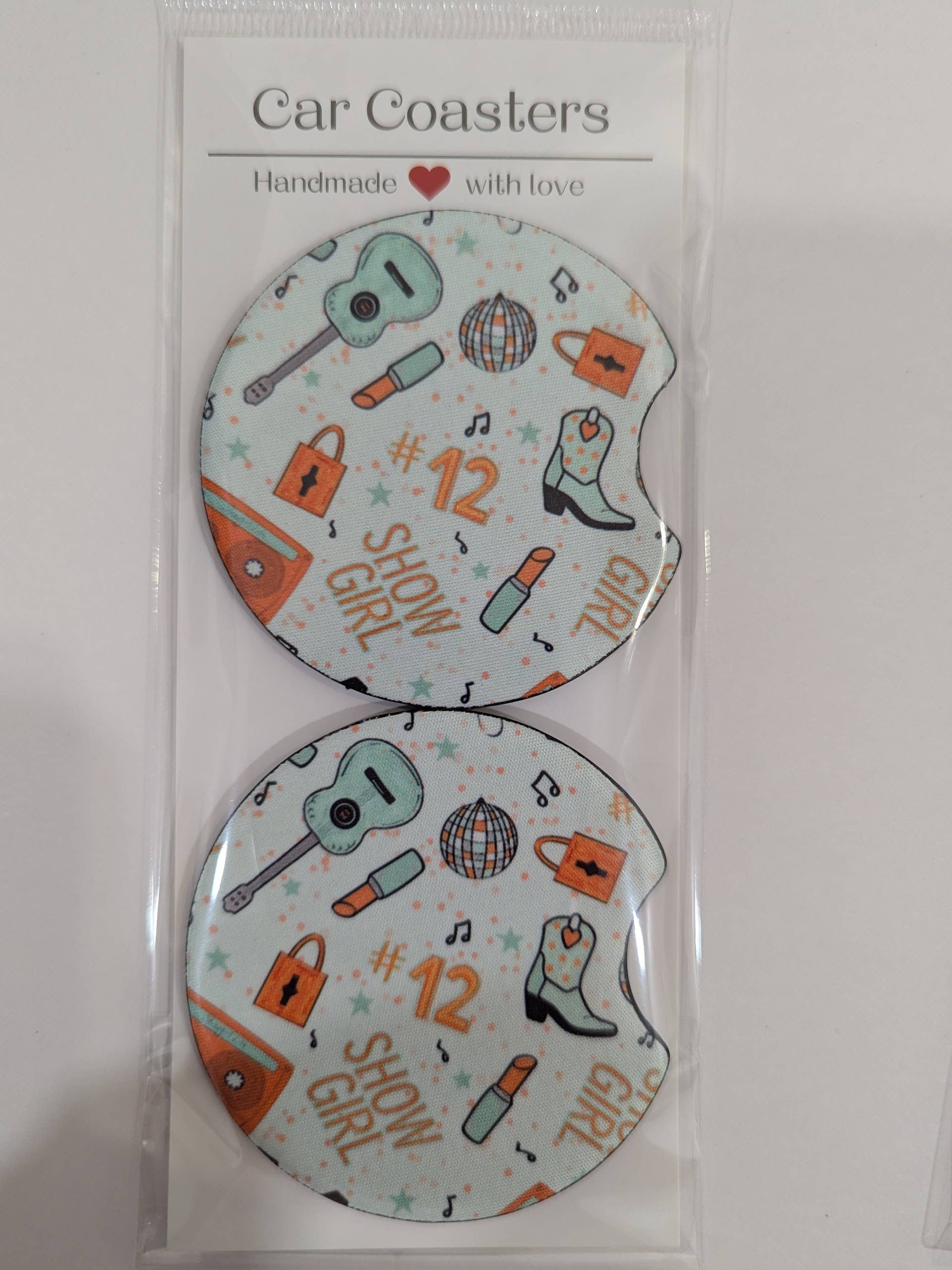 Elevate your car's interior with a touch of show charm using our neoprene car coasters! These cute coasters are not just practical—they’re a delightful treat! Size: approx 2.75" x 2.75" x 0.2"